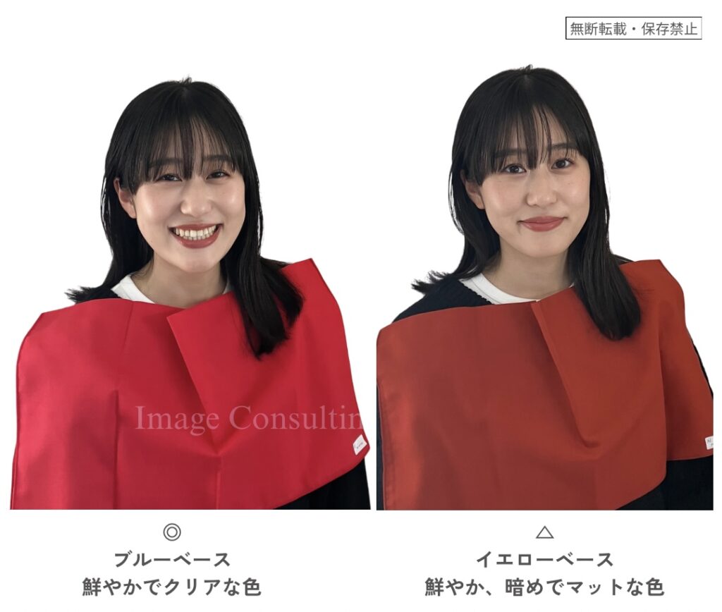 ブルベ向けの赤リップが強く感じる場合は、